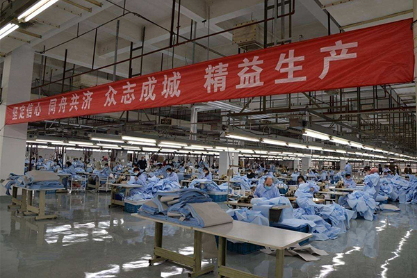 抗“疫”之下,南方作為主要生產(chǎn)地區(qū),廣東佛山等多家服裝企業(yè)“轉(zhuǎn)戰(zhàn)”防護(hù)服,思諾華制衣廠專業(yè)20年沖鋒衣、滑雪服等戶外服裝的生產(chǎn)廠家,緊急轉(zhuǎn)換為防護(hù)服工廠,每天出貨1000件防護(hù)服為一線人員送去“愛”。