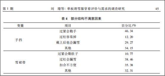 接下來作者又對消費者穿著單板滑雪服不滿意因素進行調查,結果如下。