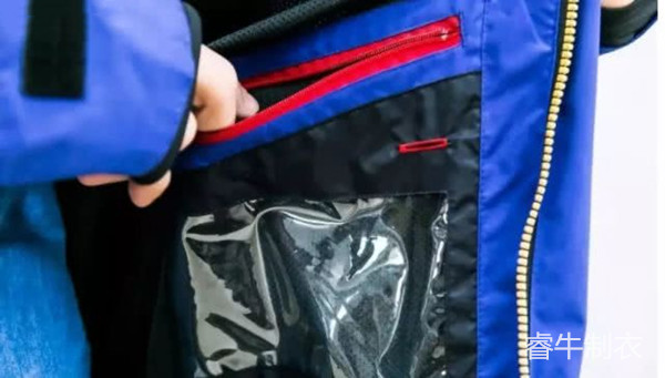 基于沖鋒衣簡潔的要求,它的兜袋一般很少。對于滑雪服來說就不同了,為了讓滑雪者收存更多東西,比如滑雪鏡、手套、手機之類的個人用品,滑雪服安排的兜袋很多,而且開口也很大,因為滑雪者需要帶著手套取放物品。開口處一般使用拉鏈密封,防止在劇烈運動時物品的丟失,需要特別注意的是:滑雪服的小口袋很多,材料柔軟的是為了存放手機和滑雪鏡,質地透明的是用來存放滑雪時間卡,這些細節都是服裝設計人員充分考慮到使用者的實際需求后所設計的。