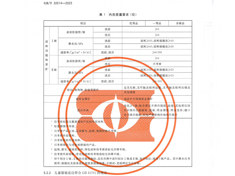領(lǐng)先的沖鋒衣工廠不僅滿足國家標準,更建立更嚴格的企業(yè)標準: