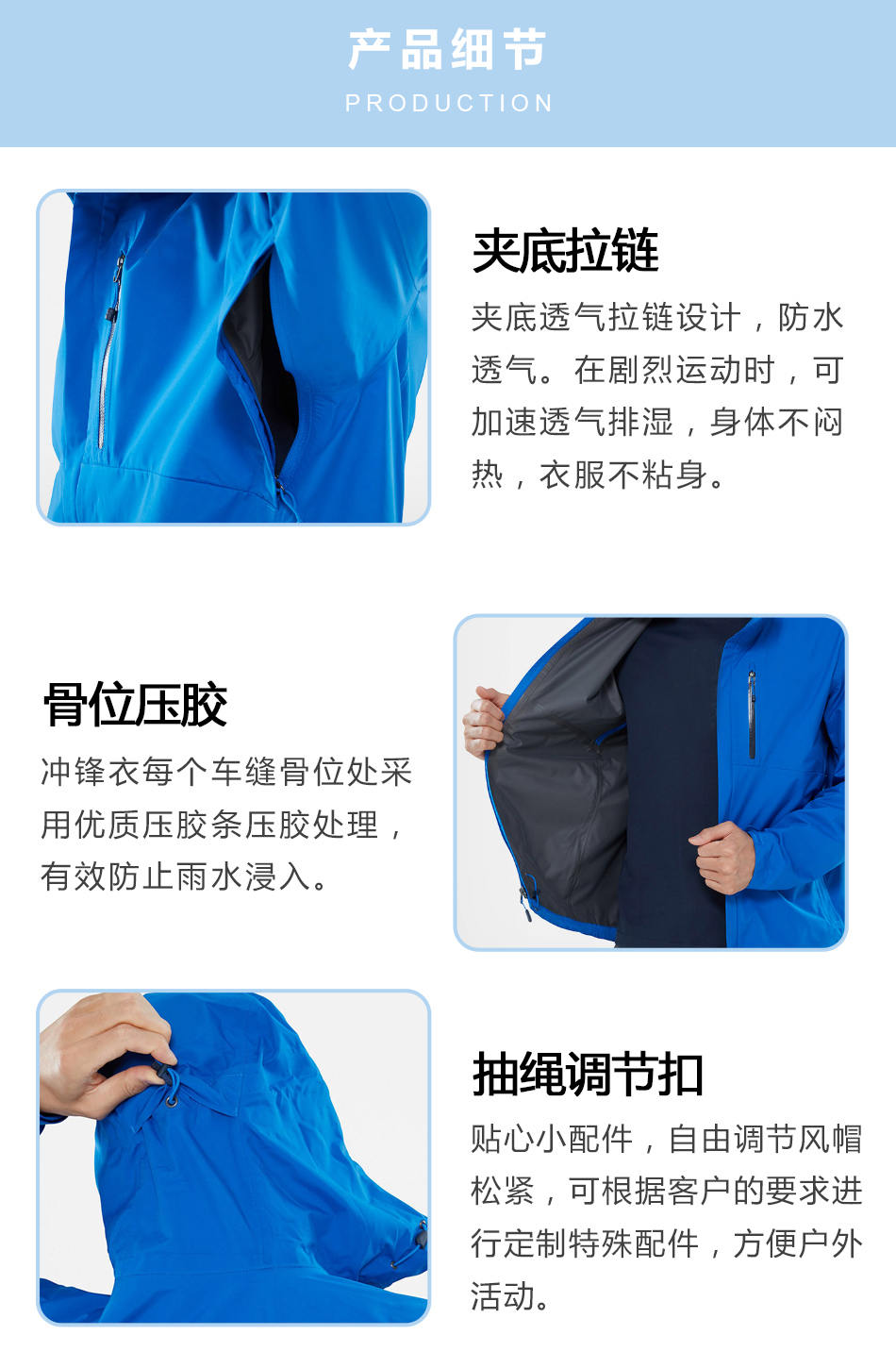 沖鋒衣生產(chǎn)廠家貼牌代工單層壓膠沖鋒衣