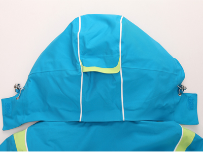 防水拉鏈采用無縫壓膠防水拉鏈激光熱封工藝貼合,面料采用進口防水透氣涂層膜,使防水透氣膜與面料完美結合。可根據客戶需求生產加工沖鋒衣。