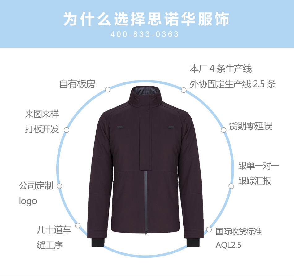 袖口設計:人性化的袖口設計,可根據客戶的要求進行特殊團體夾克定制,方便穿著。