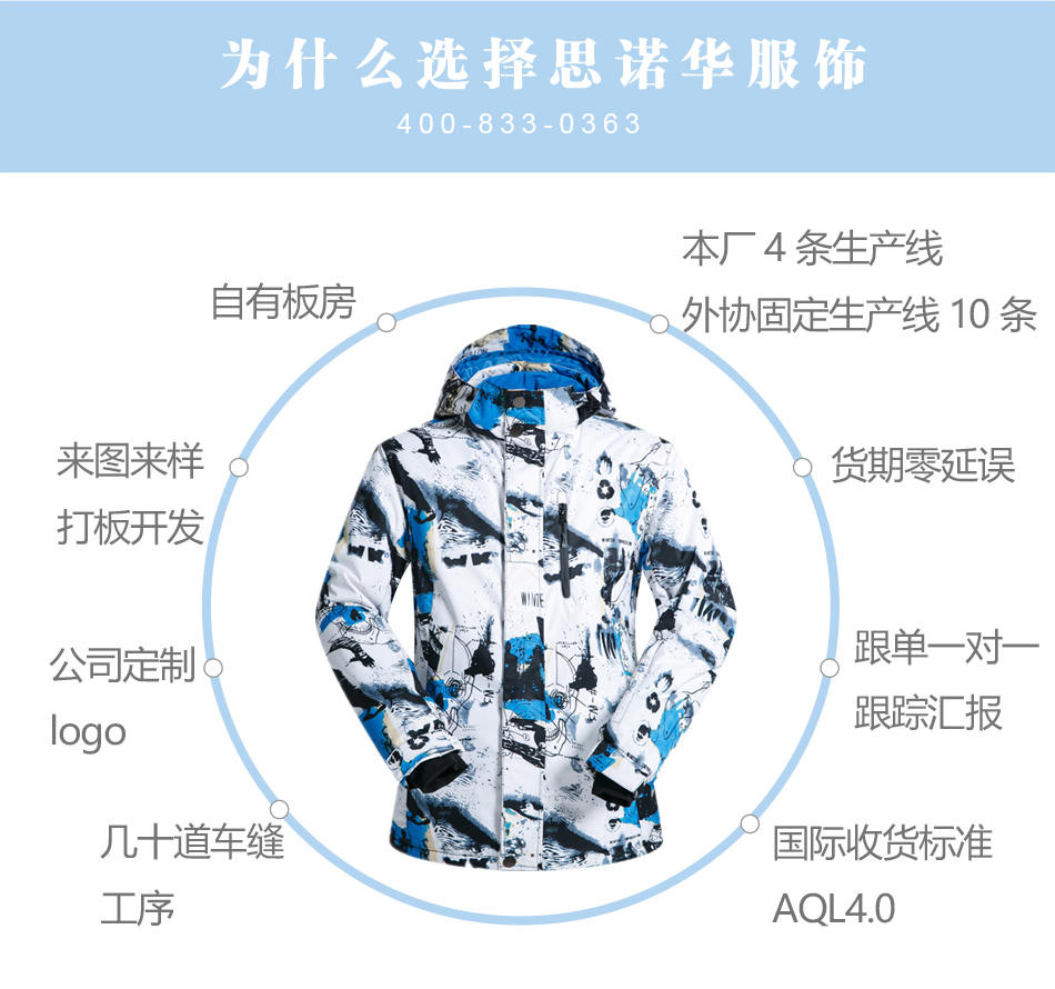 思諾華服飾—戶外防風防水透氣保暖滑雪服定制